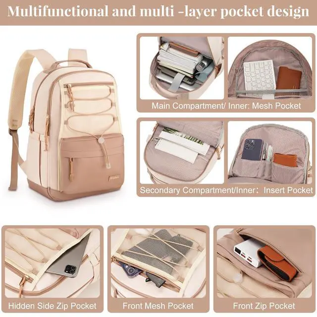 ^^ Multi-purpose Classic Backpack: This college backpacks for women effortlessly transits from a laptop to a casual daypack, travel backpack, and work backpack. Whether navigating the bustle of daily life, conquering the commute, or exploring new horizons, keep your style wherever you go.