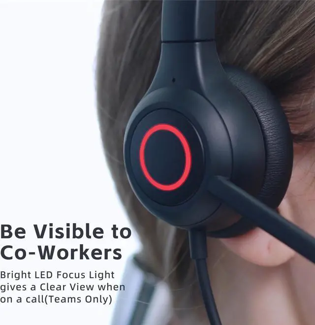TEAMS FOCUS LIGHT: The VoicePro 80 model includes a fully illuminated focus light which illuminates every time the user activates a Microsoft Teams Call. The Glowing LED light will light up red when a call is made and will stay red during the call, this unique feature limits interruptions from co-workers so you can fully focus on the caller.