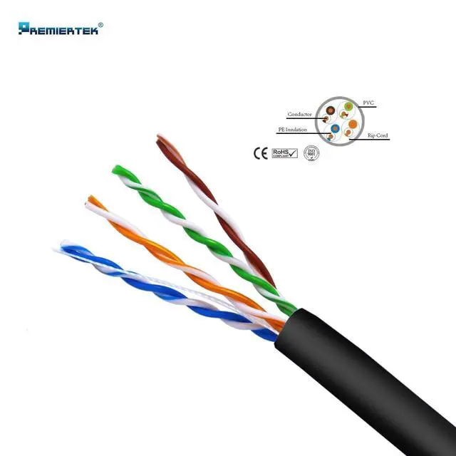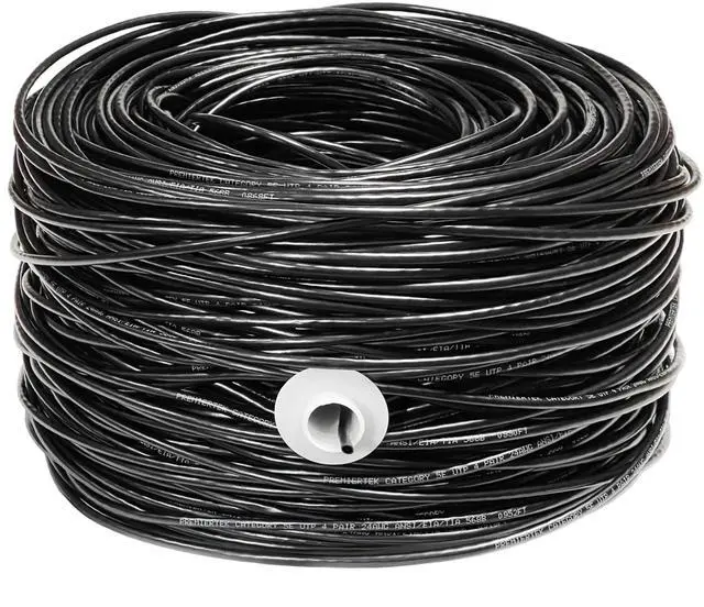 Premiertek 1000 Ft Cat5e 24AWG CCA UTP Solid 4-Pairs Network Ethernet LAN Cable Bulk Black (CAT5E-1KFT-BK)