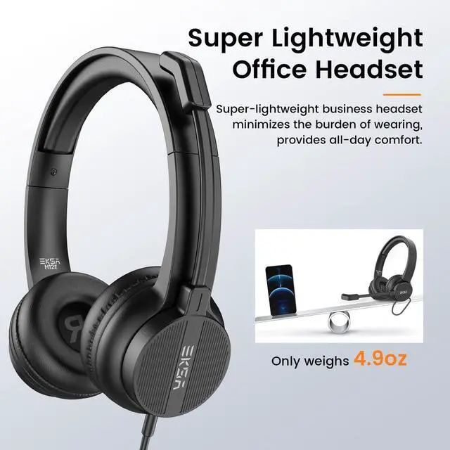 It outputs high-quality audio to your caller, your sound is crystal-clear. Its perfectly suitable for business communications in office, call center, or working from home. ^^ Lightweight & All-Day Comfort EKSA computer headset with microphone is lightweight and only weighs 4.9 oz, so it wont put too much pressure on your head. And with its soft memory protein ear pads fitting your ears perfectly, youll feel nothing discomfort even if wearing this office headset after a long time communication. The breathable ear cushions and retractable headband bring the optimal wearing comfort for those who use it.