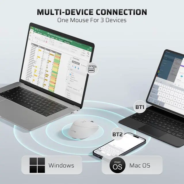 AI-Powered Voice Typing & Translation - Experience the future of productivity with our AI Voice Typing & Translate Mouse, allowing you to type up to 300 words per minute with 98% accuracy. Effortlessly translate over 100 languages, making it the perfect tool for all language enthusiasts and professionals. ^^ Versatile Connectivity - Supports both BT and 2.4GH z wireless connections for a flexible and reliable experience with your MacBook, PC, laptop, or desktop, catering to all your multi-device needs. ^^ Ergonomic Design for Comfort - The Ergo Mouse is designed with user comfort in mind, featuring a lightweight and ergonomic shape to reduce hand strain during extended use, making it ideal for professionals and gamers alike who spend hours on their PCs.
