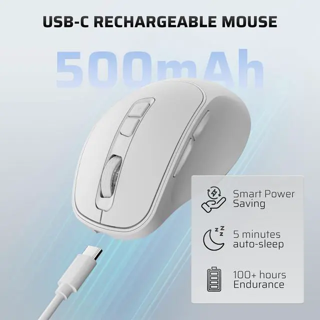 ^^ Long-lasting Rechargeable Battery - Equipped with a 500mAh rechargeable battery and Type-C fast charging port. Enjoy long-lasting power and quick recharging. Activate the 5-minute smart sleep mode with a single click to save energy and minimize interruptions, keeping you focused on what matters most. Perfect for a productive workspace! ^^ Pro software support - Customize each key with distinct functions and enjoy five levels of adjustable DPI settings, tailored to meet your control needs across different scenarios. Elevate your user experience and take full command of your workflow! Easily access the software download page by simply holding the scroll wheel for six seconds.