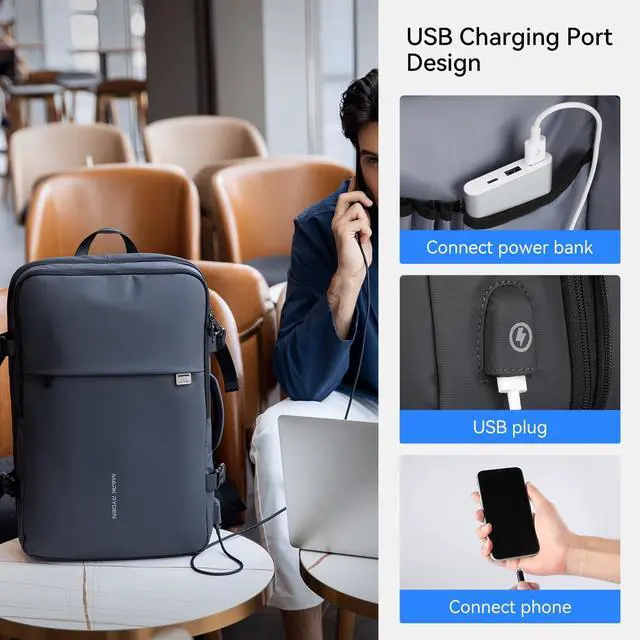Expandable Large Capacity: Compressed capacity of 23L, full-expansion zipper creates 30% percent more packing space, capacity up to 40L, total three layers. The first compartment can store your phone, passport or other small items etc. The second compartment can store clothes and daily supplies. The third compartment is a laptop compartment, which can store a 17.3 inch laptop as well as 15.6 inch, 14 inch and 13 inch Laptop. ^^ USB