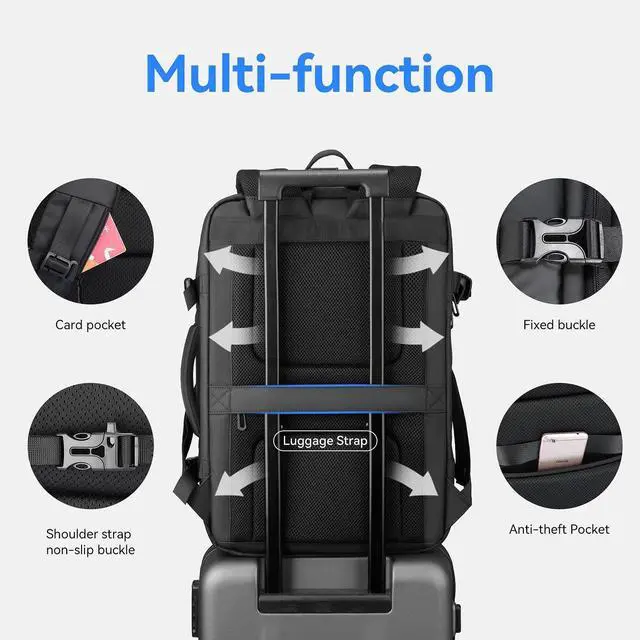 ^^ Multi-functional Design: Business backpack with back U shaped three-dimensional ventilation design helps with air convection, ventilation and heat elimination. Wide breathable mesh shoulder straps and back with plentiful sponge pads help relieve the stress from your shoulder. The back of the backpack luggage strap design makes the journey easier. In addition there are anti-theft pocket design, shoulder strap non-slip buckle design, fixed buckle design, card pocket design, etc.