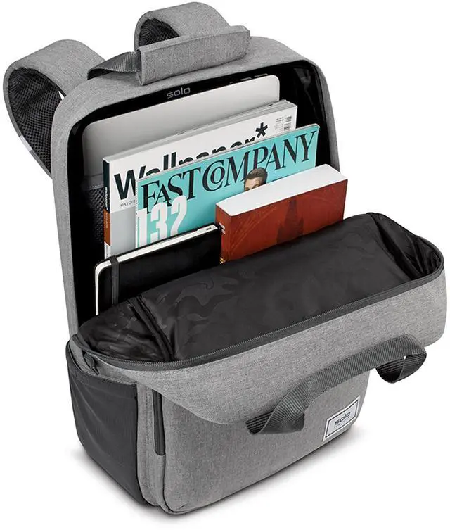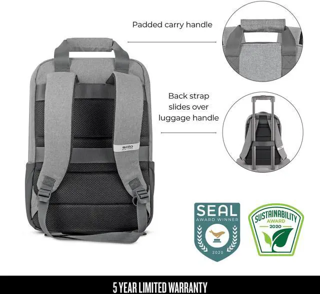 The Re: Claim 15.6" laptop backpack is made with a water resistant coating that is also and sanitize-able. Perfect for on-the-go commuters, students, or travelers. Go hands free with the two top loops that can hold a jacket or umbrella. This bag comes with a 5 year warranty.