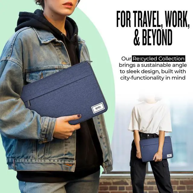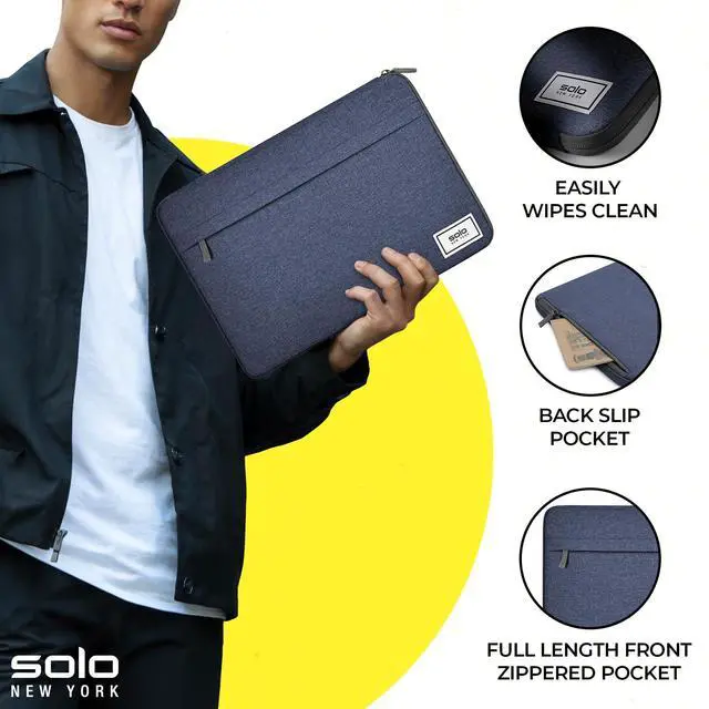 Solo New York Laptop Bag Sleeve for Women & Men - Travel Case for Computer & Tablet, Fits up to 15.6" Laptops, Fully Padded, Lightweight Construction, Durable Zippers - Re: Focus, Navy