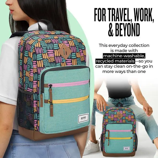 LIGHTWEIGHT BACKPACK - This backpack is lightweight and compact for travel. It's also machine-washable so you can take on whatever your commute or school year throws at you (or spills on you) ^^ LAPTOP COMPARTMENT - Protect your tech with the mesh compartment that fits laptops up to 15.6", keeping your device secure during travel or everyday use ^^ COMFORTABLE DESIGN - Designed for all-day wear, this versatile bag features a padded back and adjustable shoulder straps for a more comfortable carry ^^ THOUGHTFUL DETAILS - This backpack includes a reflective sunglasses loop on the shoulder strap and features a black camo interior lining, adding style and functionality to your daily carry ^^ SOLO SUSTAINABILITY -