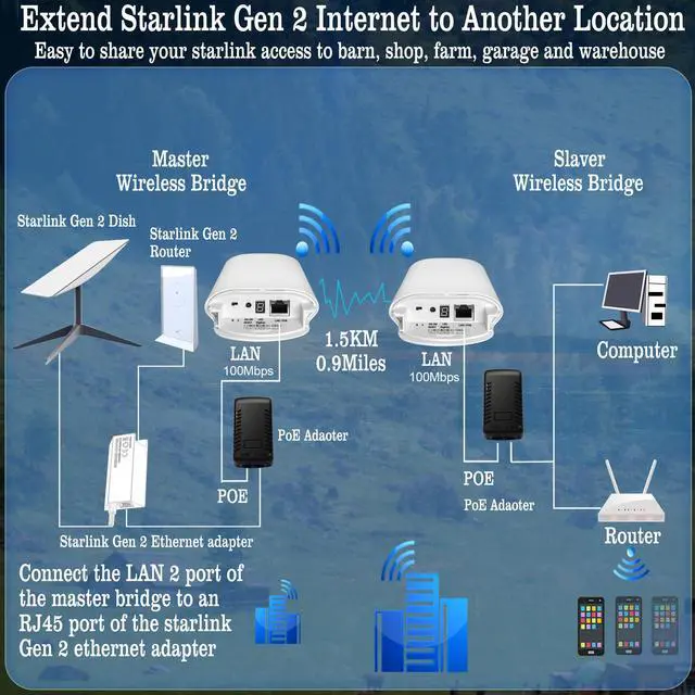 [100Mbps High-speed Data Transmission for Starlink Internet]: Supporting speeds of up to 100Mbps for WiFi bridging, users can transfer data and access the internet with minimal latency. Whether downloading large files, streaming HD videos, or engaging in online gaming, smooth and fast experiences are assured. This capability for high-speed data transmission enables users to leverage network resources more efficiently, enhancing both work productivity and entertainment experiences.