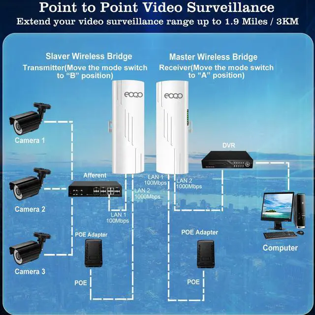 Multiple operation modes,suit for different network & environment: Connect an IP Surveillance Camera to CPE520s secondary port and utilize its long-range connectivity to send surveillance video back through the wireless network for extended surveillance coverage. Tethering a series of IP Cameras to the CPE520 gives you 'eyes on' places you might not otherwise see. Easy to set CPE with IP cameras and networks DVR