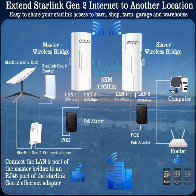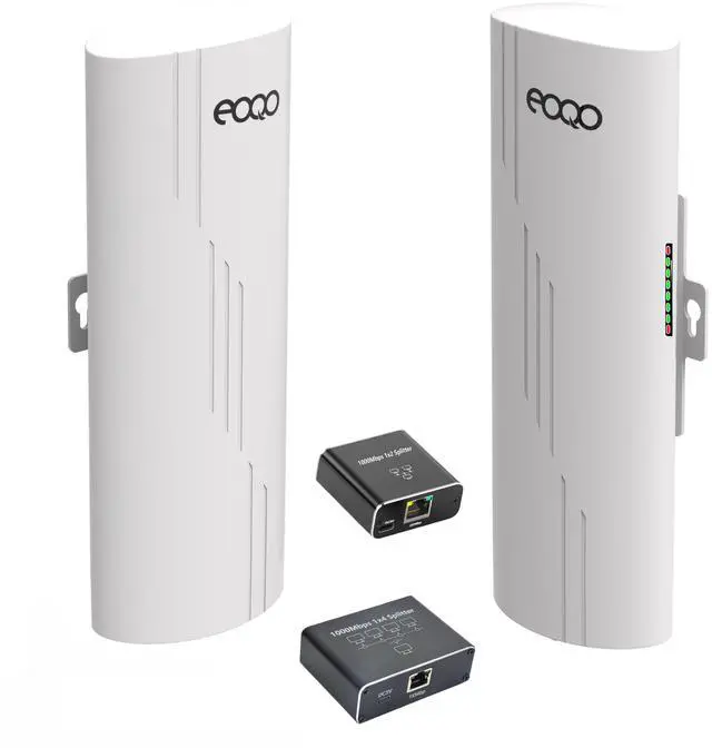 Point-to-Point Wireless Bridge with Two Ethernet Splitters, 1000Mbps 3KM Range, 5.8G WiFi Extender with 14dBi Antenna, Network Extension and LAN Splitter for Seamless Connectivity