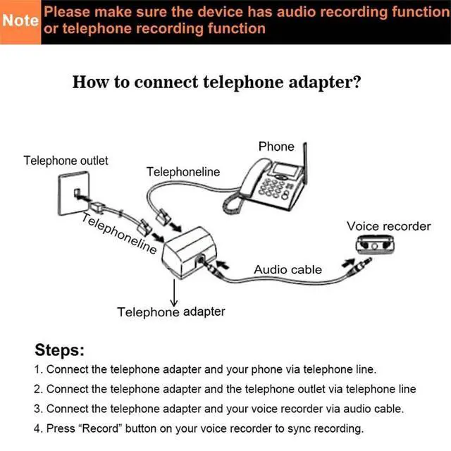 Note: This adapter does not include the phone or recorder, it is designed to enhance your recording experience by providing crystal clear audio recordings from your telephone conversations.