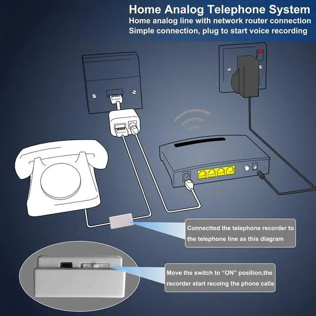 AUTO RECHARGING AND MICRO SIZE Micro size telephone record with auto recharging faction, just connect to the telephone line, no additional power needed ^^ SUPPORT SD CARD FOR MEMORY STORAGE - Used for home/office telephone conversation recording, include 16GB memory card, support MAX 32GB micro SD card (not included) ^^ RELIABLE FOR RECORDING - Designed by Embedded lunix system with high speed MCU, make it running stable, not like the other telephone recorder need PC support, its only support analog telephone system ^^ PLUG & PLAY - Just connect the telephone cable to telephone line in / line out and turn the power switch to one side will start working, automatic recording each phone call