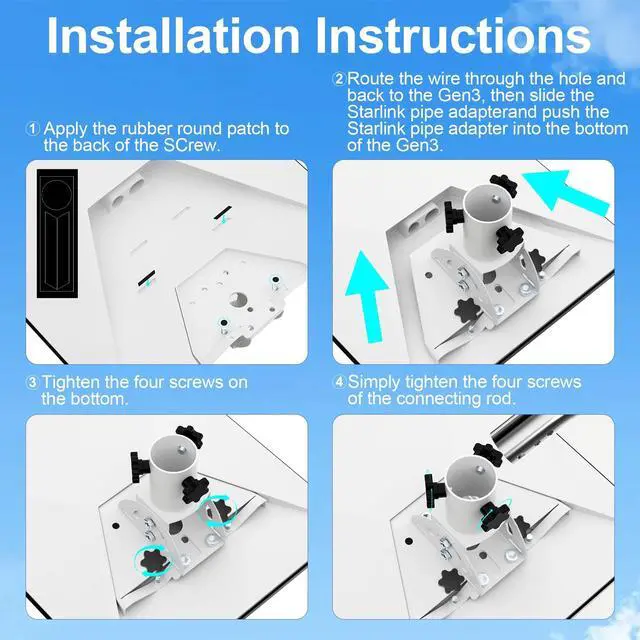 The included expansion screws and self-tapping screws ensure a secure fit, and U-bolts are provided for attaching to RV ladders. Additionally, the dual position adjustment feature allows you to maintain a vertical orientation of the wall mount while simultaneously tilting the dish by 20 degrees for improved signal strength. Elevate your Starlink experience with this reliable and adjustable wall mount kit, designed to keep you connected wherever you are.