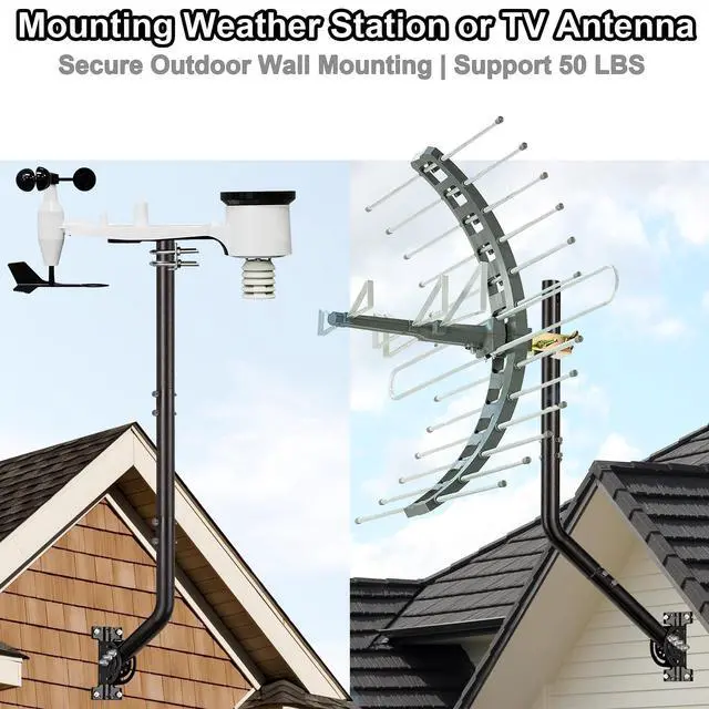 ) of up to 3-1/4 inches, and can accommodate a minimum size of 1/2-inch O. D. to ensure that your devices remain secure and stable. Hassle-Free InstallationDesigned for convenience, the mount comes complete with all necessary accessories and screws for a quick and effortless installation process on walls and polesno additional tools or professional skills required. Sleek DesignFeaturing a stylish yet simple design, this antenna mount seamlessly integrates into any indoor or outdoor setting, enhancing your space without sacrificing aesthetics. Ideal for various setups including wall-mounted TVs, solar panel installations, wireless bridges, and more, this heavy-duty wall mount bracket is your go-to solution for reliable and versatile support.