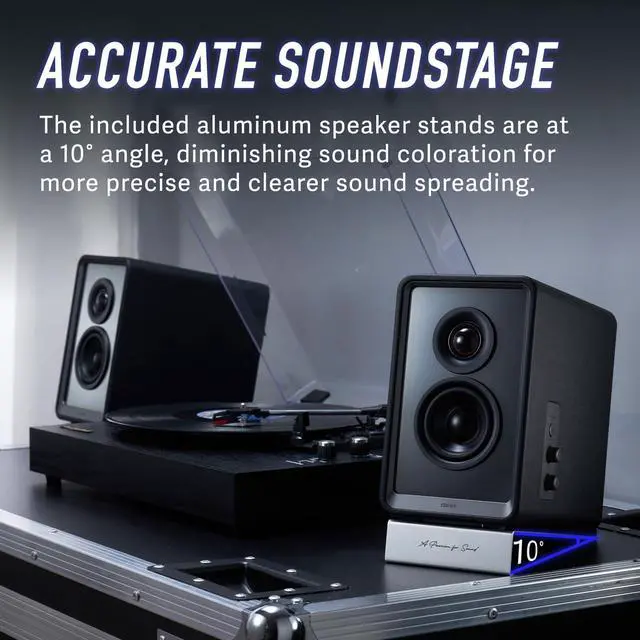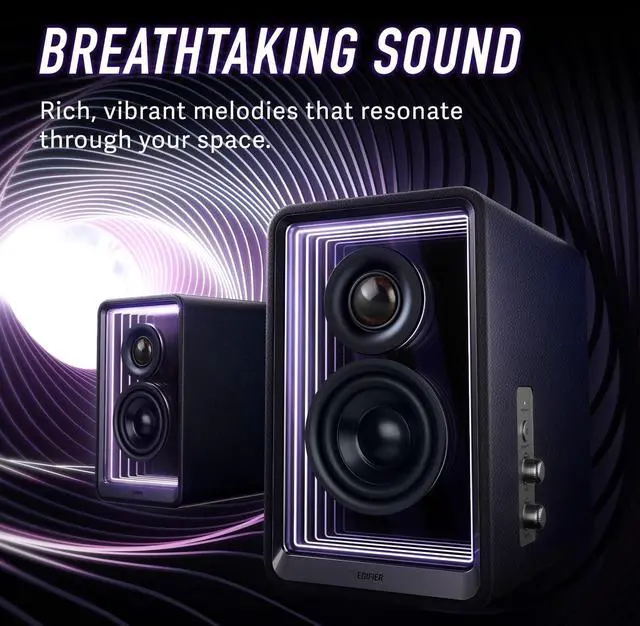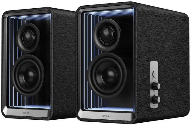 USER-FRIENDLY DESIGN - Included speaker stands for an enhanced listening experience. Convenient side-mounted buttons and knobs provide easy control and EDIFIER ConneX App for seamless cus
