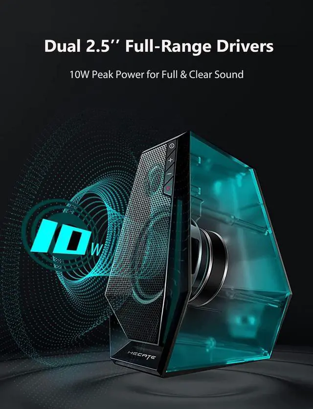 High-Quality Sound - Dual 2.5 inches full range drivers with 10 Watts peak power for live stereo