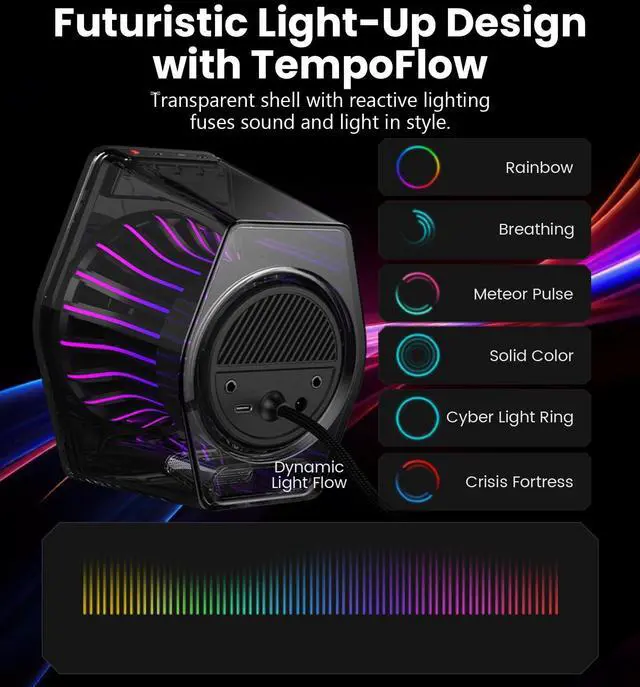RGB Light TempoFlow Tech: Unleash the TempoFlow dynamic lighting engine 20 LED strips + 100 RGB beads sync with gameplay via 7 modes. Control with HECATE software or buttons. Transparent enclosure amplifies 270 dynamic glow, creating a futuristic gaming zone. ^^ Multi-Device -