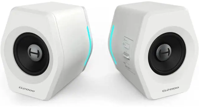 Superior SoundHIFI 2.75 inches full-range stereo speakers unit with backward mega bass port 16W RMS power, 32W total peak power, and a subwoofer output interface, deliver exceptional sound quality and strong bass. ^^ Multiple Sound ModeProfessional acoustic-team tuning, EQ adjustment with Game, Music and Movie modes for multiple usage and outstanding sound effect, the small multimedia speakers greatly satisfy your picky needs on sound. ^^ Broad CompatibilityVersatile compatibility with 3.5 mm AUX, Bluetooth and USB sound card inputs, for all your devices like PC/ Mac/ PS4/ Xbox/ Laptop/ TV/ CD Player/ Mobile Phones, etc.