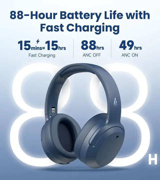 Multipoint Bluetooth & Simultaneous Play/Charge: Enjoy enhanced wireless stability with both Bluetooth V 6.1 and USB-C wired connections; The stable wireless link supports simultaneous two-device pairing for seamless switching between calls and media, while the wired mode enables continuous playback with charging; Gaming Mode reduces latency for responsive audio ^^ Long Battery Life & Fast Charging: Engineered for endurance with up to 88 hours of continuous use (49hrs with ANC), supported by fast charging that delivers 15 hours of playback from just 15 minutes of charging ^^ AI Noise Cancellation for