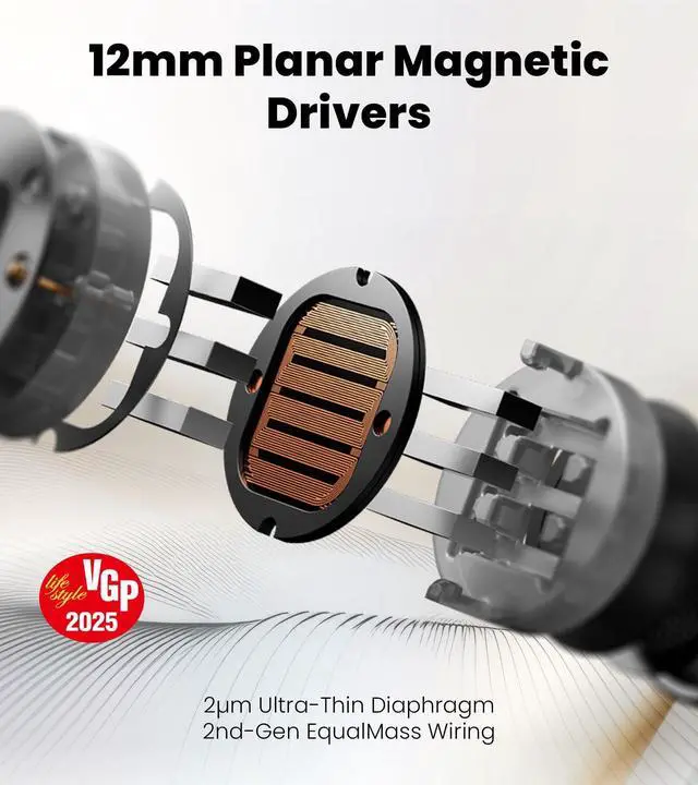 3rd-Gen Qualcomm Adaptive ANC Hybrid active noise cancellation dynamically adapts to environments, blocking up to 40dB of noise while preserving audio clarity for focus in commutes, offices, or travel. ^^ Revolutionary Planar Magnetic Tech 12mm drivers with 2m ultra-thin diaphragm and 2nd-Gen EqualMass wiring eliminate distortion, delivering balanced studio-grade sound. ^^ Hi-Res Audio Wireless LDAC/LHDC 5.0 & aptX Lossless support 96kHz/24bit audio via Snapdragon Sound for immersive lossless quality. ^^ Crystal-Clear Calls 6-Mic system with aptX Voice and AI algorithms isolate speech even in noisy environments. ^^ 30H Playtime & Fast Charge Wireless charging case delivers 30 hours total.