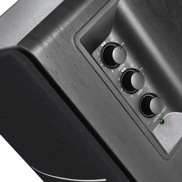 Bass, treble, and volume control located on the side panel. ^^ SIDE PANEL CONTROLS - Use the side panel knobs to adjust the EQ to your liking. The controls are located on the active/powered speaker.