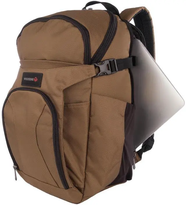 KEEPS YOU ORGANIZED: This WOLVERINE backpack features a dedicated organization compartment with seven pockets and a key hook, providing you with quick and easy access to all your essentials. Additionally, there are two exterior zippered poc