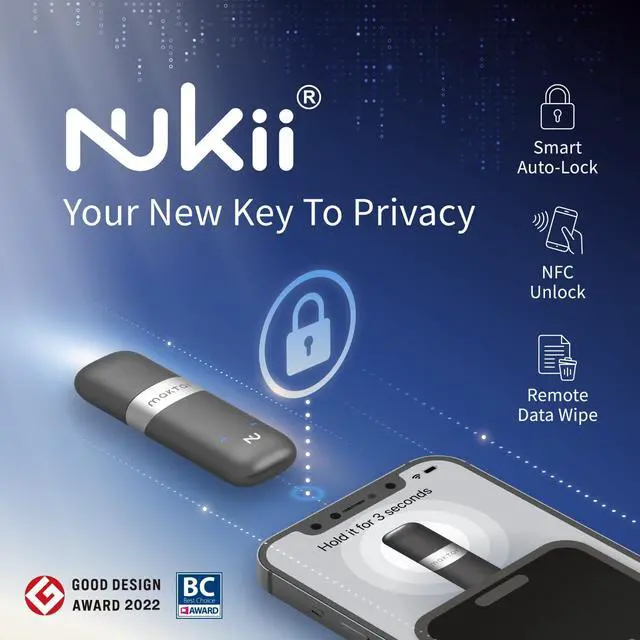 MAKTAR Nukii NFC USB C Flash Drive - USB Thumb Drive with Patented NFC Sensor Unlocking, USB Flash Drive with Automatic Locking, Add Unlimited Shared Users, Remote Wipe, USB Stick, Pearl White 256GB