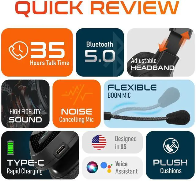 Last: Indulge in unparalleled comfort and durability with our meeting headset, meticulously crafted with its plush cushioning, easily adjustable headband, and non-slip headpad. The microphone's flexible boom and 270 rotation accommodate both left and right ear orientations, making it as versatile as it is comfortable. Built to withstand the rigors of daily use, this wireless bluetooth headset is your enduring companion for work and leisure. ^^ Quick Charge, Long-Lasting