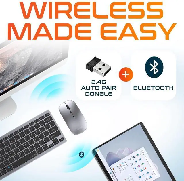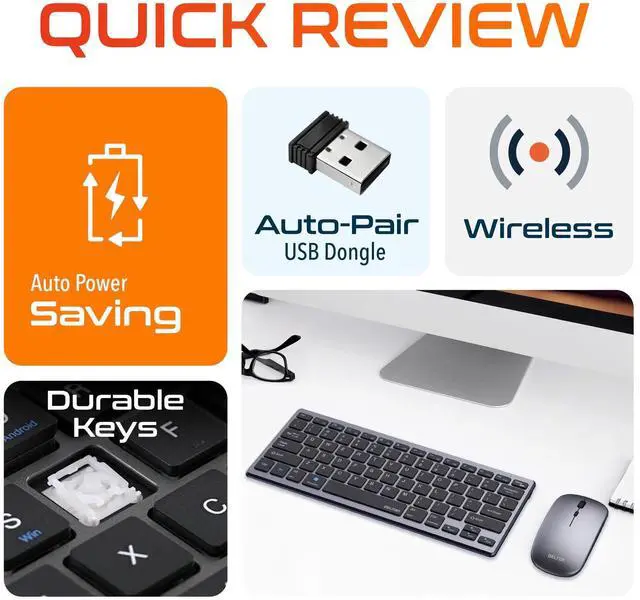 Effortless and Wireless ConnectivityTake your workspace to the next level with the Delton N35 wireless keyboard and mouse compact, designed with Bluetooth connectivity, 2.4G wireless dongle and range of up to 30 feet. They provide seamless integration across various operating systems, including Windows, macOS, and iOS. Our ergonomic keyboard and mouse wireless combo ensures uninterrupted performance in larger rooms or workspaces. The dual connection options of mac keyboard and mouse streamline device switching, offering convenience and efficiency. Efficiency, Battery Life, and Advanced FeaturesOur mini wireless keyboard and mouse combo is equipped with an automatic power-saving mode that activates after 10 minutes of inactivity.