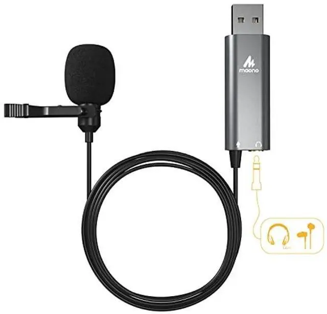 MAONO USB Lavalier Microphone with Headphones Jack, Omnidirectional Computer Lapel Clip Mic for Recording, Gaming, Streaming, Podcasting, YouTube, Skype, PC, Laptop, Mac, AU-UL20