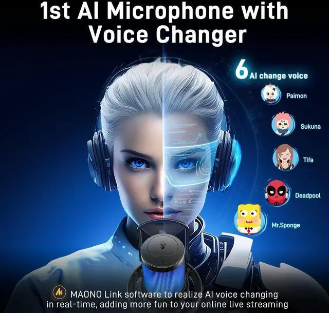 MAONO Wireless USB Microphone for PC, Gaming Streaming Mic with Software AI Voice Change, 3-Level Noise Cancellation, Custom EQ, Gain Control Mic for Laptop Computer Podcast (DM40-Black)