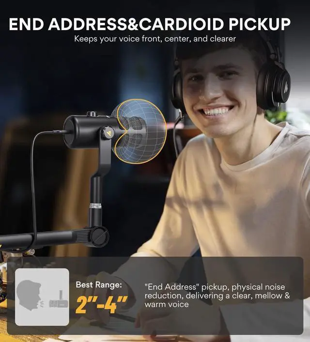 Podcaster: This USB dynamic microphone adopts cardioid direction and "End Address" technology to pick up your voice more accurately and center. The high sampling rate of 192kHz/24bit perfectly reproduces the pure, clear, and undistorted audio. The mic has a good mid-frequency curve, which is great for vocal recording. Increase clarity, and reduce plosives and vibration with a built-in double-layer pop filter, providing better listening enjoyment without harshness. ^^ Easily