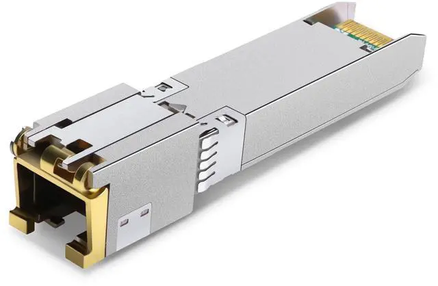 10gbe sfp+ to rj45 copper module is equipped with RJ45 connectors that is compatible with Cat6/Cat6a Ethernet copper cables and transmit 30m at 10GBASE-T data rates. In addition, the 10 Gbps SFP RJ-45 module is backward intermediate rate 2.5GBASE -T, 5GBASE-T, providing multi-gigabit Ethernet deployment. QSFPTEK manufactured 10GBASE-T SFP+ module is compliant with IEEE 802.3 an, IEEE 802.3 az, and SFP+ MSA. The 10G RJ45 module uses the electrical signal to transmit data, allowing an upgrade to 10G by reusing existing copper cabling. This 10G SFP+ RJ45 copper transceiver caters to 10 Gigabit Ethernet (10GbE) copper connections, delivering a cost-effective NBASE-T copper solution.