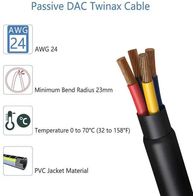 DAC Feature: 10Gb SFP+ to SFP+ Direct Attach Copper Twinax Cable, Passive, 7-meter, AWG24. Widely compatible for Cisco, Ubiquiti, D-link, Netgear, other Open Switch, etc devices.