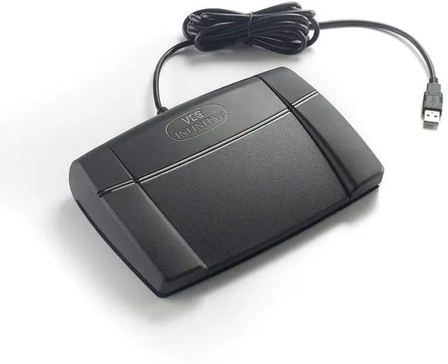 The VEC Infinity 3 USB Digital Foot Control was developed using foot control design and technologies for transcription and hands-free dictation. It features tough construction and durable internal switches which are engineered for performance and user comfort. With a re-sculpted contour, this Infinity foot pedal also features a low-profile design and has a wider flare at its base for added flexibility. It features a greater surface area to stand firmly on the ground without slipping. Software is not included.
