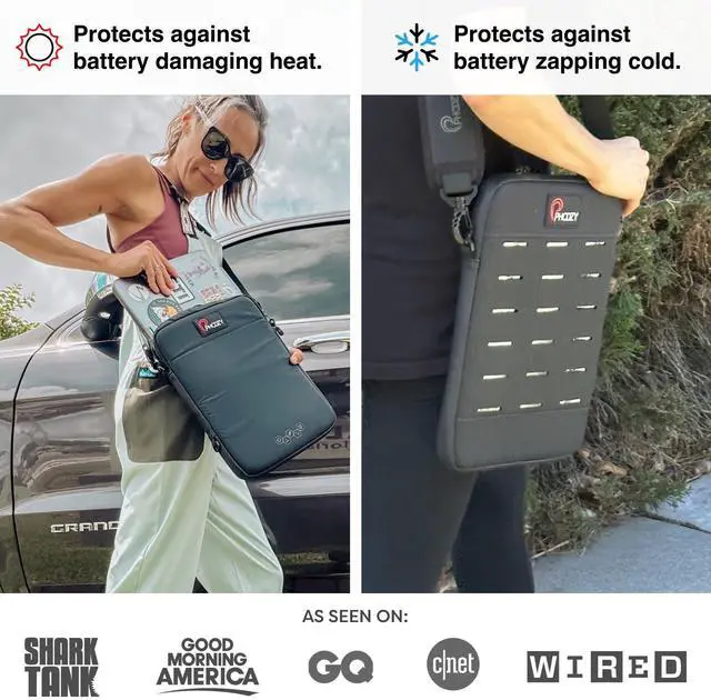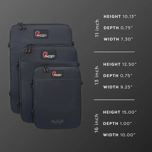 VERSATILE CARRY FOR TRAVEL: Our Sleek, Slim, and light-weight design easily slides inside other bags or use the INCLUDED adjustable, quick-release shoulder strap with pad for comfortable wear across the body or over the shoulder. Multiple crossbody strap connection points allow for vertical or horizontal carry. Laser-cut Molle Connection Panel on the back also allows you to easily connect other PHOOZY products and gear to customize your everyday carry ^^ AS SEEN ON SHARK TANK - Protects and insulates your tablet or laptop against heat, cold, drops and water. Our patented protection allows your tablet to maintain an optimal operating temperature for a longer period of time in both hot and cold conditions. NOT designed to be left in a cold car for long periods - if you must leave it in your car, power off your device first before storing it in the PHOOZY