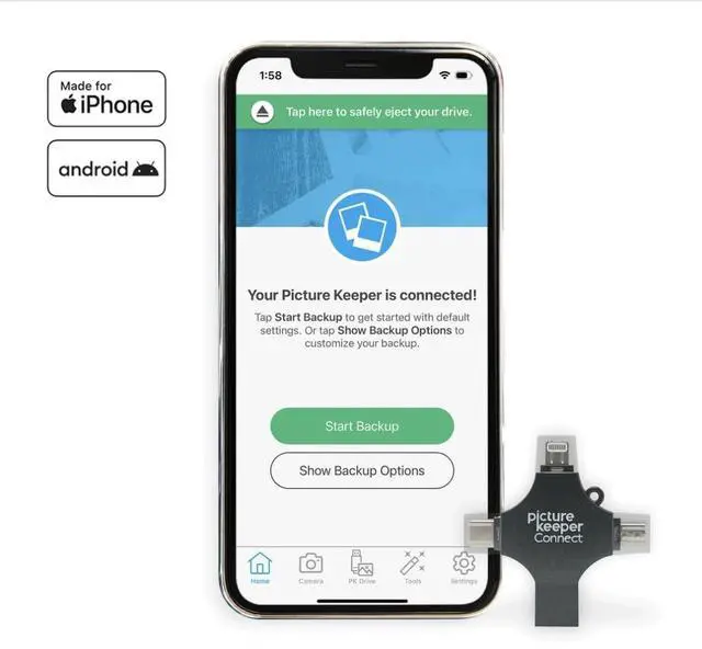 Portable Hard Drive: Whether it's your photos, videos, or contacts, Picture Keeper lets you copy, transfer, store, and protect data with ease; includes lightning and USB connectors and a Type C micro USB adapter for Android and Mac