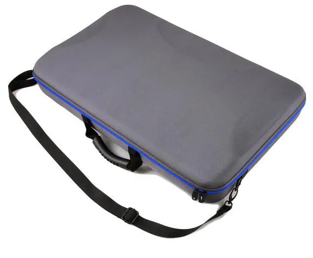 Travel Friendly Design: Case exterior measures 24 x 15 x 3.5 inches within a sleek gray exterior and blue trim zipper. A built in carry handle and clip on adjustable shoulder strap allow for convenient portability ^^ Fits a Variety of