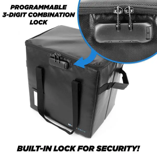 ^^ Programmable Combination Lock: Unlike many competitor record cases for albums, CASEMATIX record boxes feature a 3-digit programmable combination lock for added security. The zipper lock secures the case's contents during travel or while in storage.