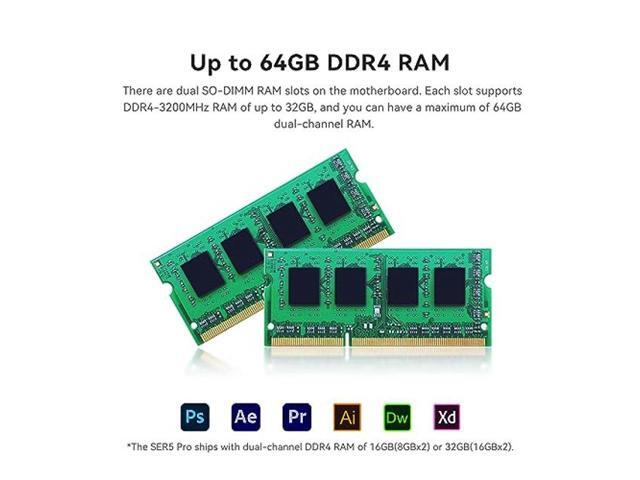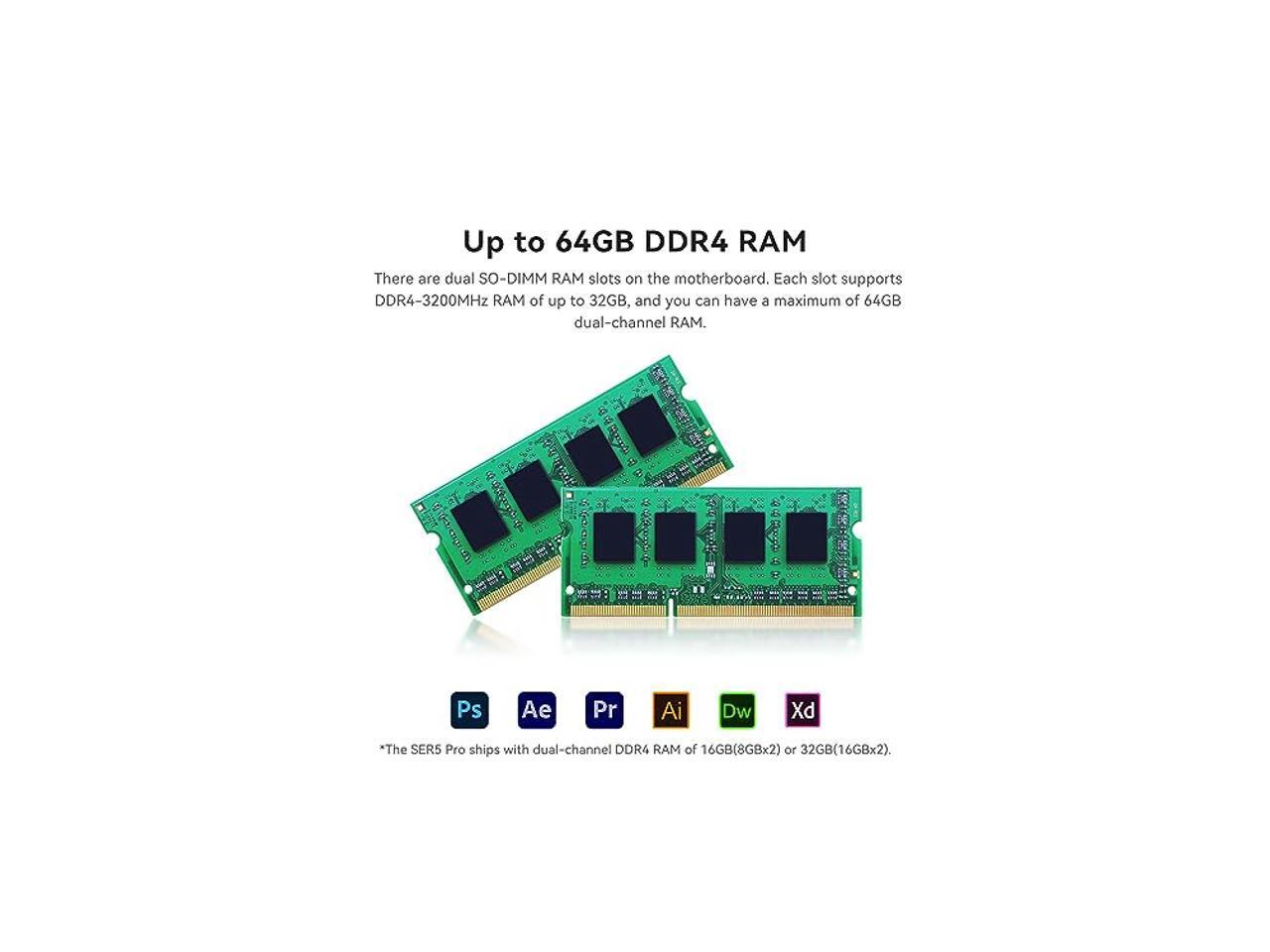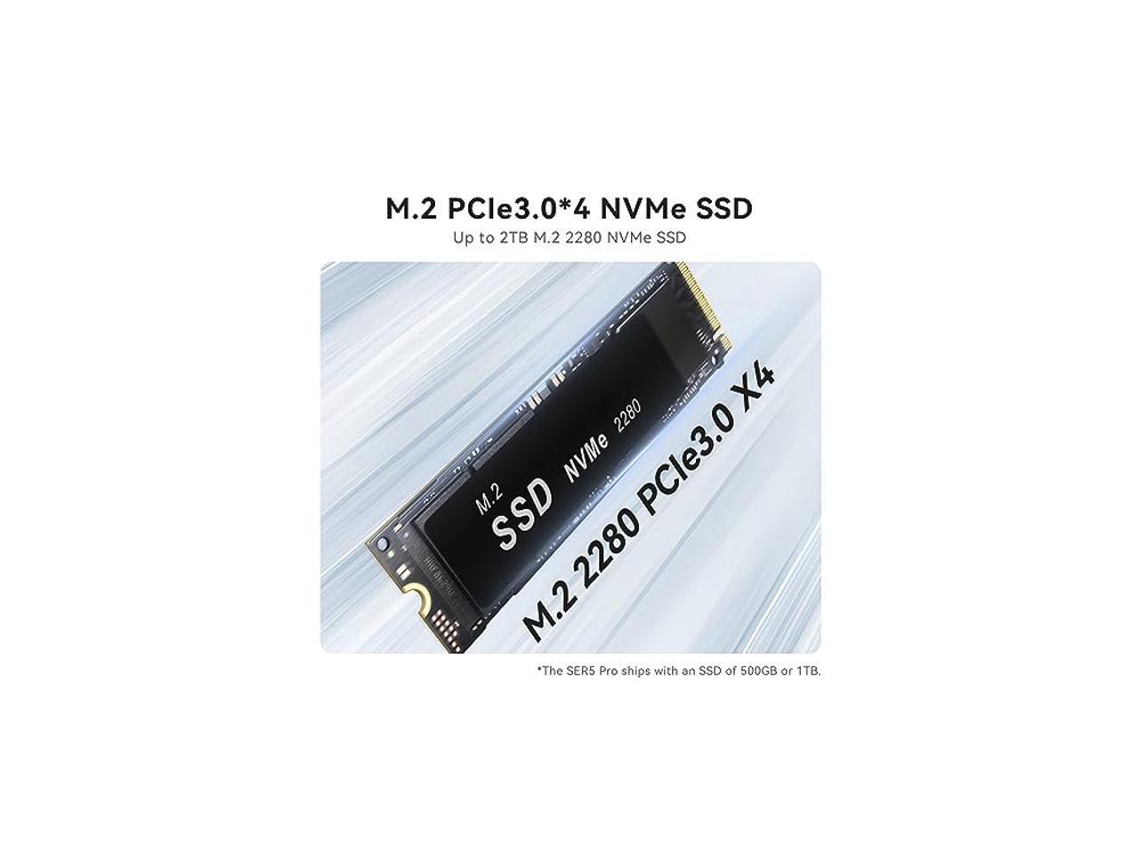 - [( AMD Ryzen 7 5700U Processor)] The SER5 Pro Mini Computer is the upgraded version of the SER4 4700U mini PC, it's equipped with AMD Ryzen 7 5700U (8C/16T, L3 cache 8MB). The base frequency is 1.8GHz / the dynamic frequency can reach 4.3GHz. 15W TDP Provides more great performance and battery life. Multi-core processing performance is 23% increased compared to the Ser4 pro 4700U. It is widely used for Video, Gaming, image editing, office software, creative design, programming etc.