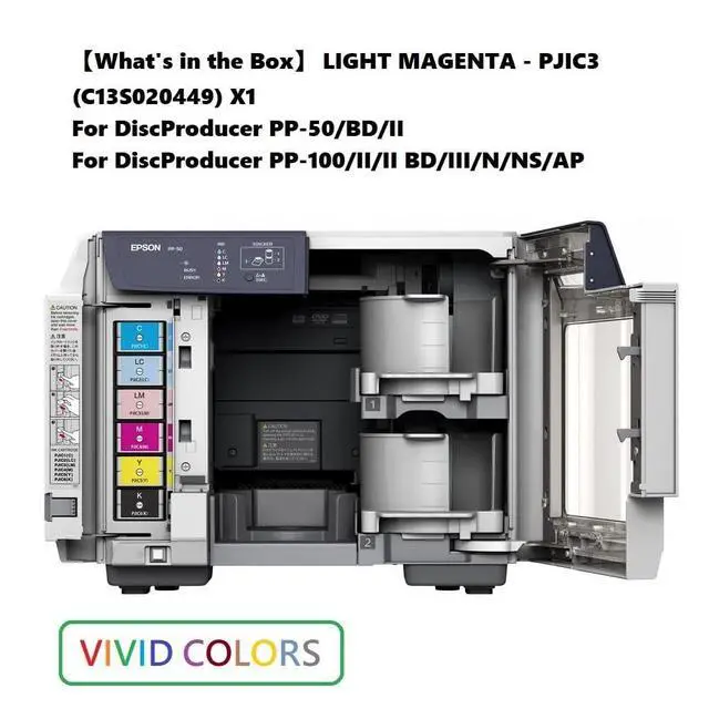 The PJIC7 C13S020690 Light Magenta Ink Cartridge, previously known as PJIC3-C13S020449, is designed for optimal compatibility with DiscProducer printers, including the PP-50, PP-50BD, PP-100, PP-100II, PP-100III, PP-100N, PP-100BD, and PP-100AP models. Engineered with high-capacity dye-based ink, this cartridge ensures vivid, true-to-life colors, deep tones, and unmatched clarity for professional disc printing needs. This cartridge features a quick-dry formula with excellent water, fade, and smudge resistance, delivering reliable and high-quality results for every print job. Its integrated LED indicators provide real-time low ink alerts, making it easier to manage workflows without interruptions.