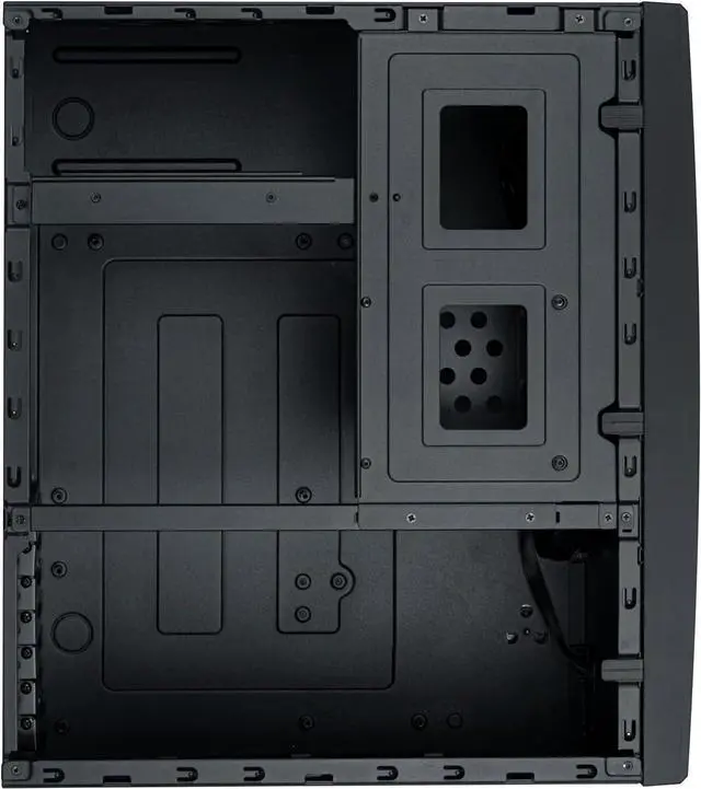 Fully meshed front panel with shortened chassis provides large surface area for air intake