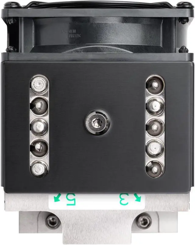 SilverStone XE04-SP5 is a CPU cooler designed for industrial or 4U rackmount servers with AMD Socket SP5. This 128mm tall 4U active CPU cooler features a 4pin PWM dual ball bearing 92mm fan with speeds of up to 5000 RPM for cooling power capable of 400W TDP. For those with a need for the most effective and reliable 4U form factor server/workstation cooler on the market, the XE04-SP5 is a top choice.