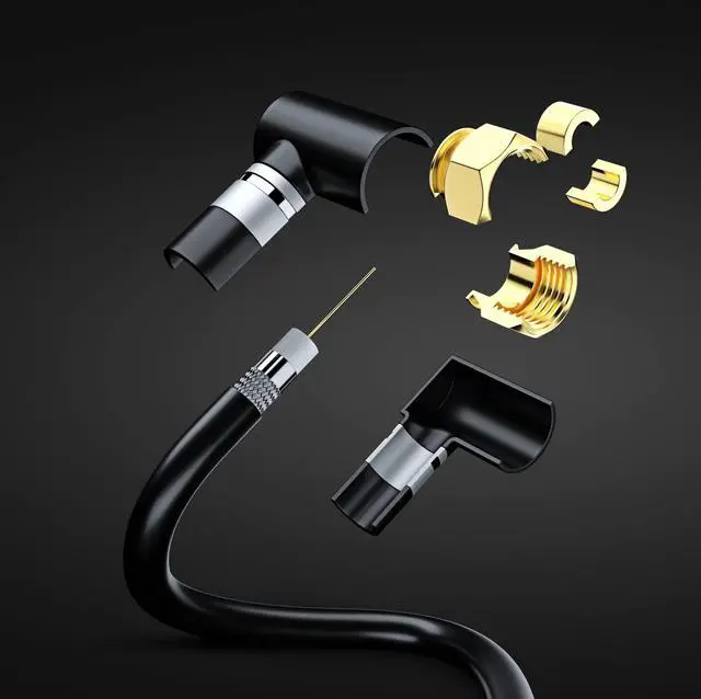 Our cable comes in both black and white, giving you the option to choose the color that best matches your decor. Plus, with a flexible and durable design, our cable is easy to install and can withstand the wear and tear of daily use. But what sets our coaxial cable apart from the rest? Our cable is engineered to provide top-notch signal quality, ensuring crystal-clear picture and sound. Say goodbye to frustrating signal drops and static-filled screens. What's more, our coaxial cable features an angled connector, making it easy to connect your cable in tight spaces behind your TV or other devices.