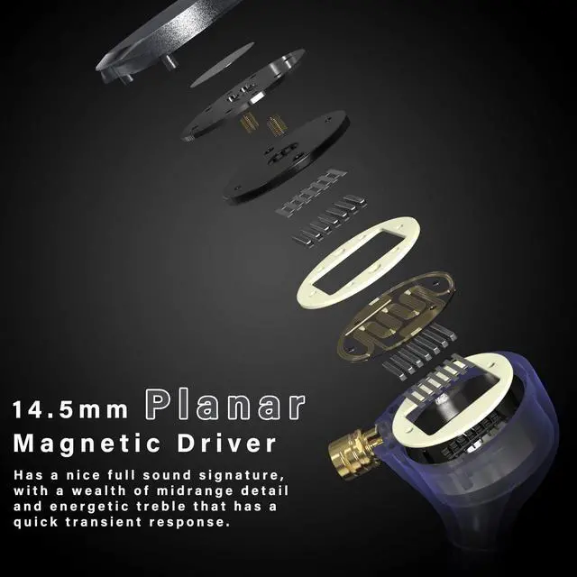 [(Planar Magnetic Driver)] MTPro is equipped with a 14.5mm planar diaphragm driver per earbud, it adopts a powerful double-sided magnetic array that allows the diaphragm to show swift movement, thus is capable of producing a highly detailed sound with an impactful bass response
