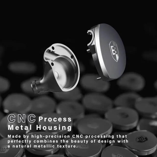 [(Metallic CNC Crafted)] The earbuds are carved with high-quality aluminum alloy material, after a high-precision CNC process including milling, cutting, and reshaping to achieve a finely textured, natural metal finish; The base and face plate are with unique & novel color contrast design makes an impression