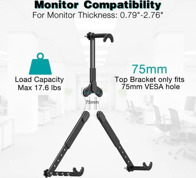 Compatible with Non-VESA Monitors - The VESA mount for most 19"-32" computer screens, weighing up to 17.6 lbs, screen thickness of 0.79" to 2.76", bezel height from 10.39" to 17.32". Our VESA adapter fits iMac, Acer, LG, HP, Samsung, Dell, ASUS and Viewsonic monitors that do not have a standard bolt-hole pattern. (Please note VESA plate and the monitor mount are not included)