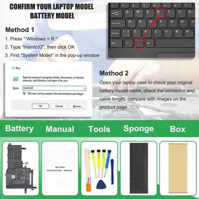 [(Quality Assurance & Note)] : RHKRKQN battery adopt Grade "A" battery cells to ensure longer battery life, durability, and lower power consumption; All our products are certified by CE, UL for safety; Before purchasing, please open the back cover of your laptop to confirm the original battery model name and shape, make sure you choose the right compatible battery