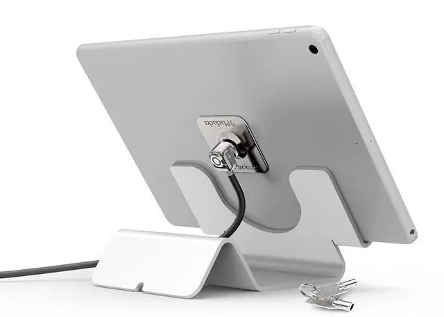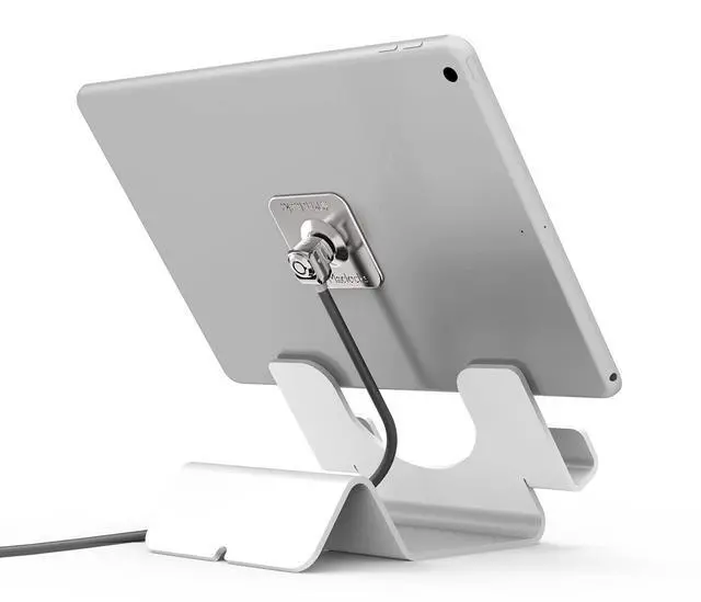 Universal Tablet Security Holder - Universal Tablet Security Stand - Secures all Tablets! The new Tablet Security Stand is compatible with all the leading tablets (7 inches or more) from the top brands. Its wide compatibility range makes it the ideal fit for any display setting whether it's a retail store, corporate office, school lab, VIP lounge or even as an addition to your personal home entertainment system. A simple design with unique security features distinguish it from the cluttered pack of tablet stands on the market. Positioned at a 45 degree angle for optimal viewing with an open back design to fit the locking point and security cable.