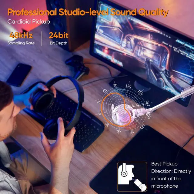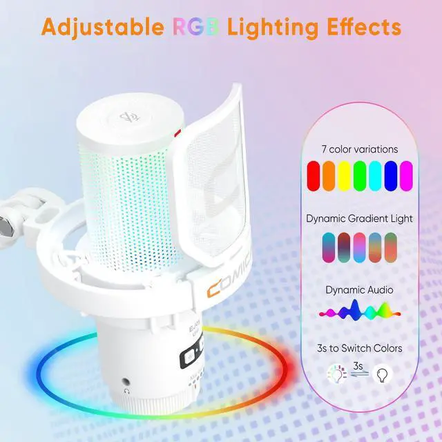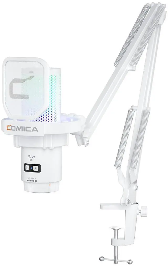 COMICA EJoy Uni USB Microphone for PC Gaming, Streaming, Podcast, YouTube, with Noise Cancellation, Mute, Gain, Monitoring - Condenser Mic for PS5, PS4, Mac, Computer (Boom Arm Mic) - White